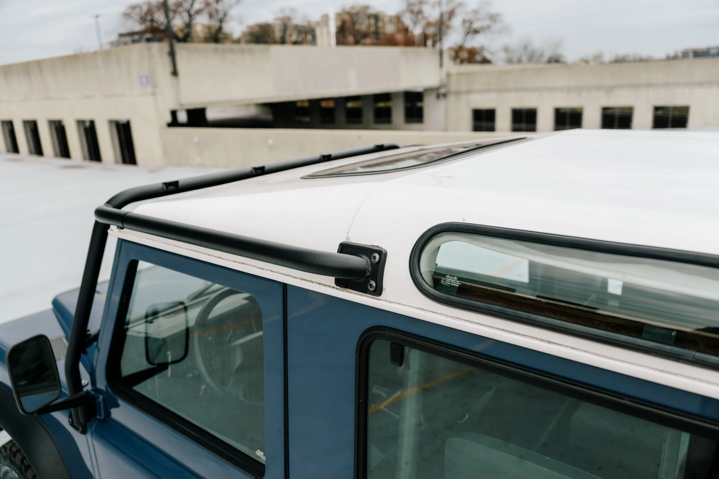 Additional recent work includes new BFG tires, new fender flares, a new alternator and battery, new coolant hoses, braided oil cooler lines, a new radiator, and a reconditioned A/C system with a new condenser, fan, and lines. All brackets, bumpers, and the iconic external roll cage were stripped and powder-coated, and new corrosion-resistant hinges were installed front and rear.