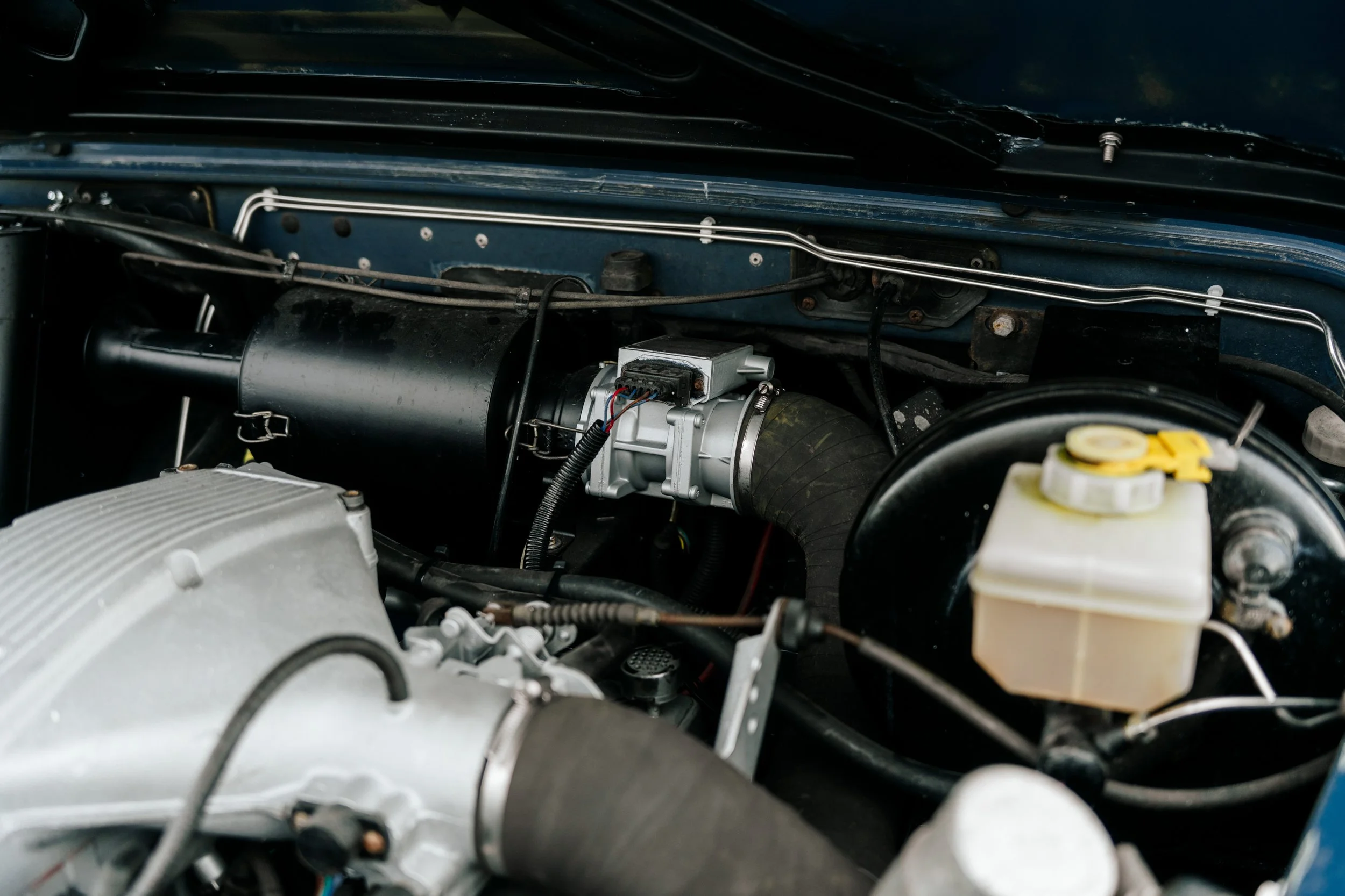 Inside, the original interior was fully reconditioned, the headliner re-covered, and the rear sliding windows upgraded with new seals. All lighting has been updated with LED units, and the body received paintless dent removal and a full paint correction to preserve the factory Arles Blue finish and original patina. A major service was also completed to bring everything up to spec.